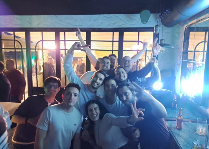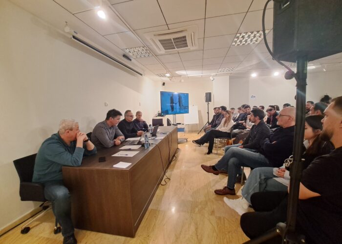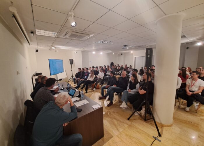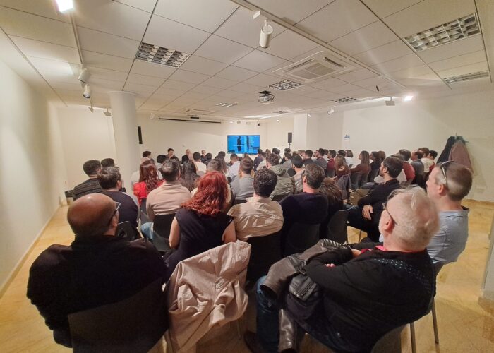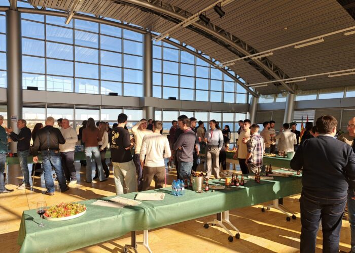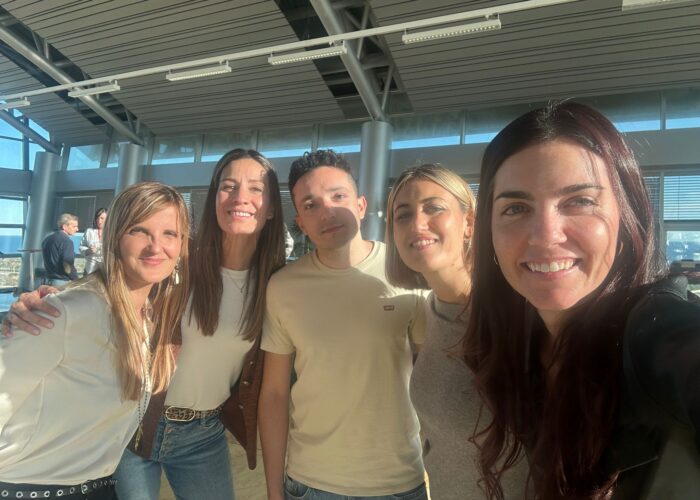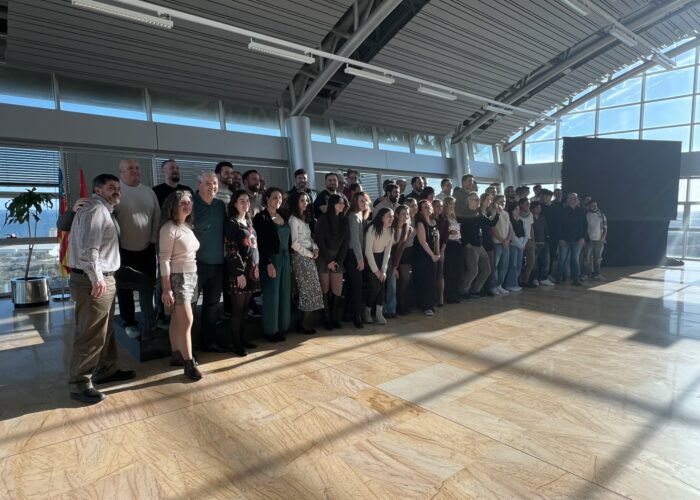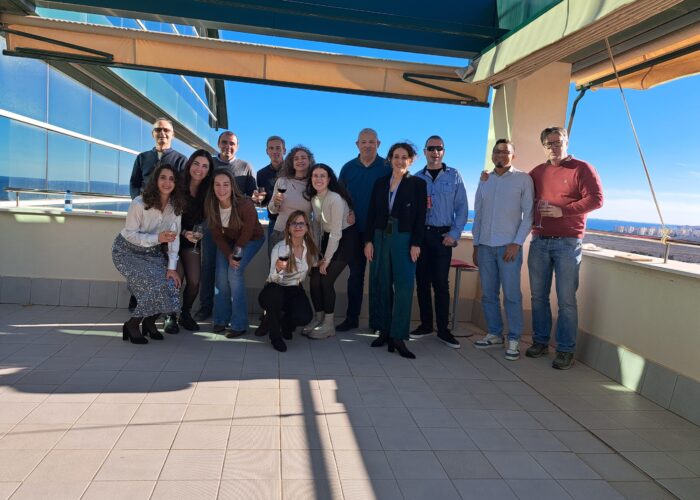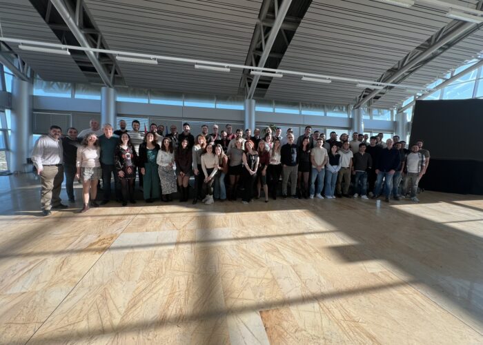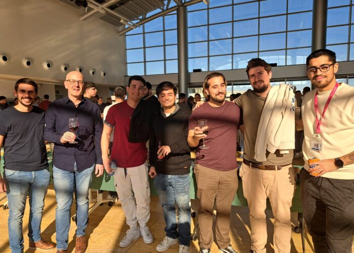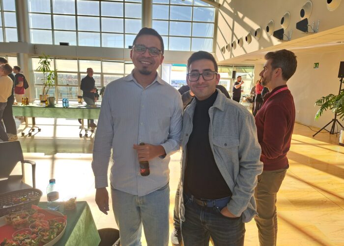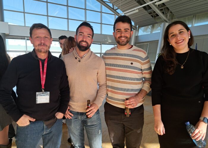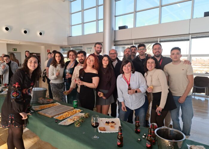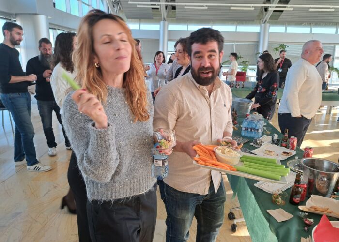 El viernes 20 de diciembre rompimos una vez más la distancia del teletrabajo. En esta ocasión fuimos cerca de 70 los que pudimos reencontrarnos, en una jornada de trabajo muy particular. Las primeras horas del día dedicadas al trabajo regular, transcurrieron con los diferentes equipos repartidos en diversos puntos del Distrito Digital. Sobre las 13.15h nos reunimos todos en la Sala Polivalente, para pasar revista al año que terminó y los proyectos a futuro.
